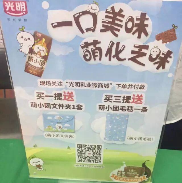 虽然价格上没有优惠,但在现场关注光明乳业微商城下单并付款,就能获得文件夹或者毛毯。下单后,产品可以送货上门。