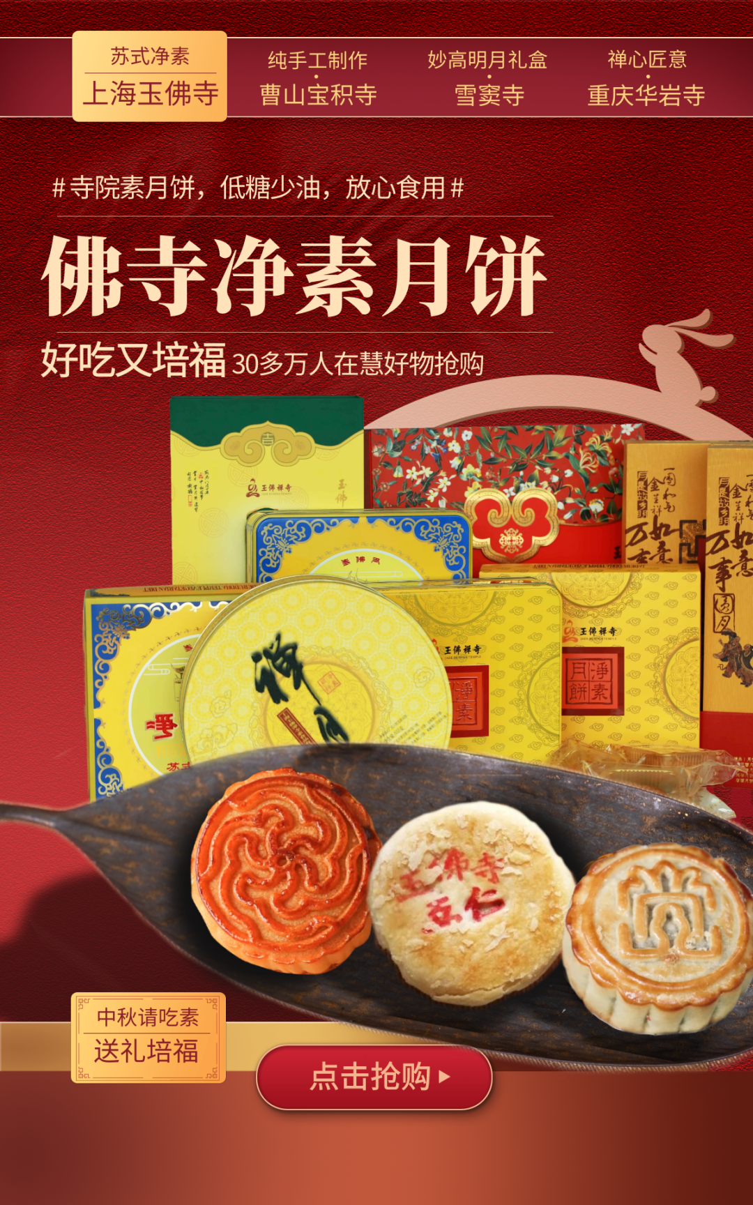 慧好物,交易担保,放心买,佛寺净素月饼,好吃又培福!小程序