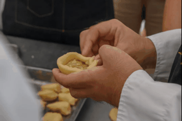 他至今仍清晰地记得,当年中秋前夕,次尝试做月饼,没有设备,只能用三张椅子拼在一起,放在客堂间权当工作台,他确定月饼配方后,庙里的点心师傅、法师和义工们一起上阵,边干边摸索。