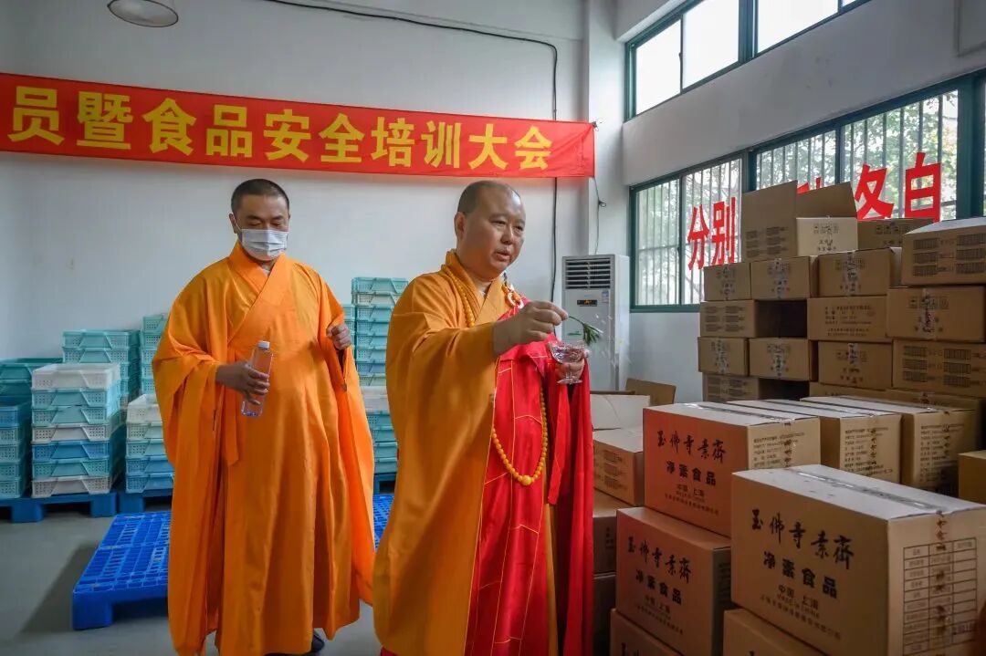 每年开炉前,玉佛寺方丈觉醒大和尚以及诸位法师们,都会前往素食工厂持咒诵经,举行洒净仪式,为大众祈福。