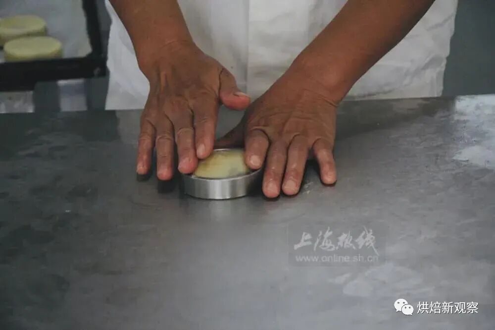 此外,酥皮和馅料有着精确的配比,配80克的月饼,要捏48克的馅料,误差要确保在2克以内,这2克差距主要是因为核桃仁有大小。