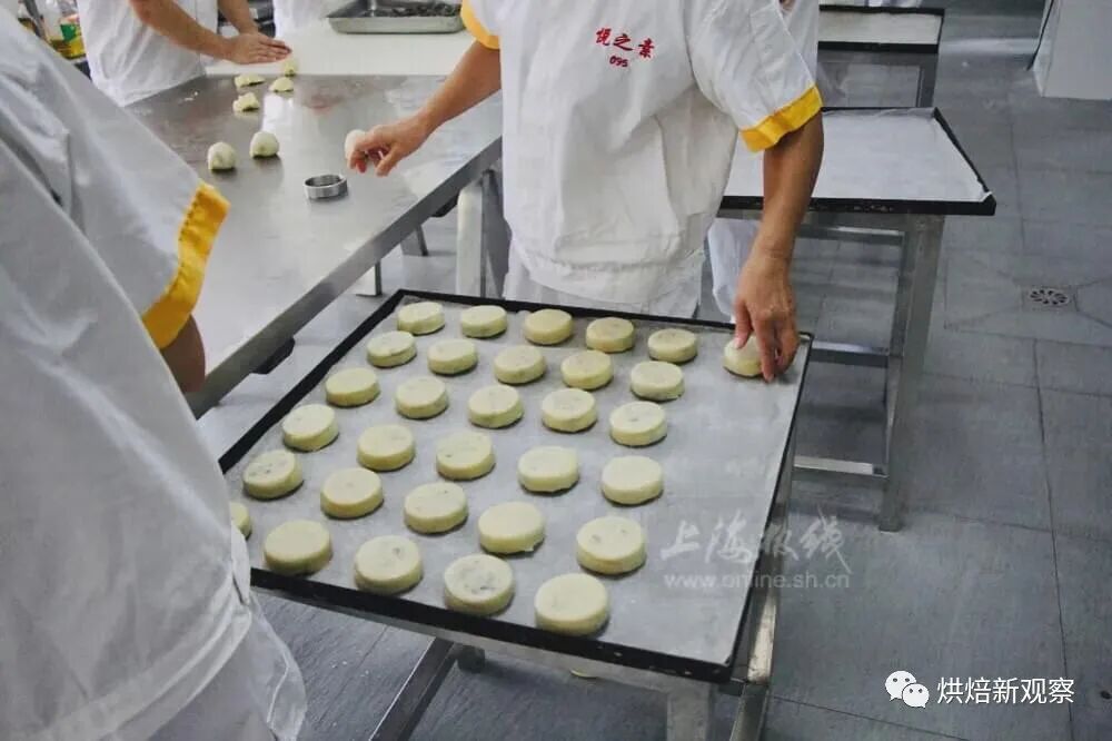 一大清早,在结束了庄重的洒净仪式后,一只只包制好了的月饼被大和尚推入了焙烤机器中,寓意着2020年玉佛寺月饼的开炉大吉!